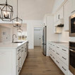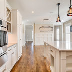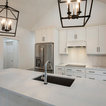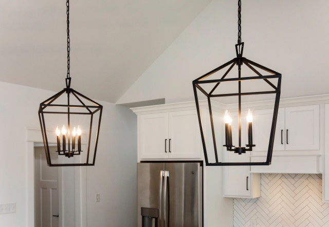 Transitional home design ideas. Geometric light fixtures.