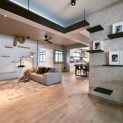 However, this fur-coloured house itself is spacious and aesthetically interesting enough for mankind too. It is "Scandustrial" with the combination of Industrial chic and Scandinavian vibe. While the living room has a cooler tone, the bedrooms are rich in fabrics to exude warmth.