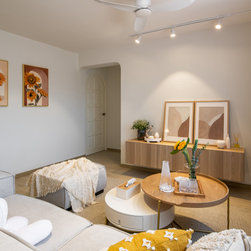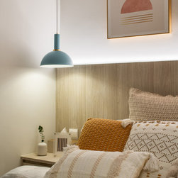 We’re walking on sunshine viewing this summer home! Vibrant decorative accessories and furniture were matched with the built-in carpentry to achieve the Scandinavian theme. The master bedroom was created with additional activity space with a built-in wardrobe and clear mirrors to reflect the entire room.