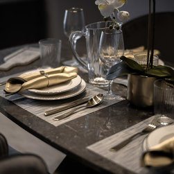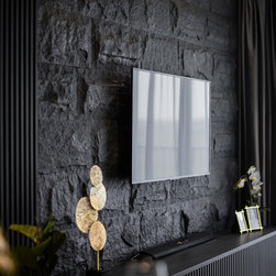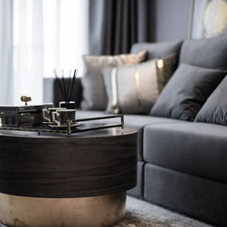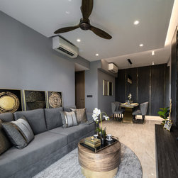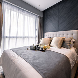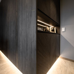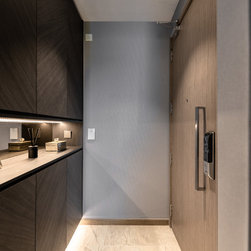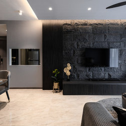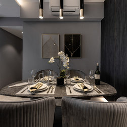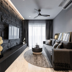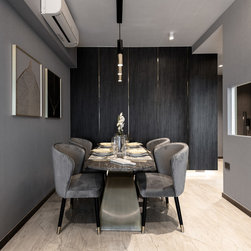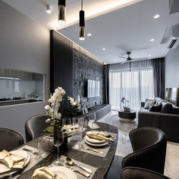 A black-dominated décor delivers a sense of dignity but it need not be too intimidating. After transiting into the kitchen, the holistic interior still looks unified but is toned down a bit to evoke an earthy feel.
