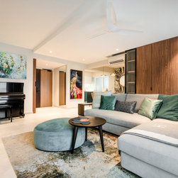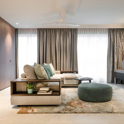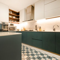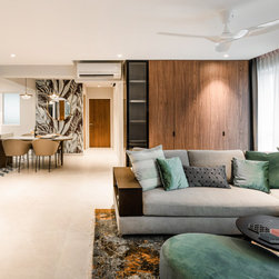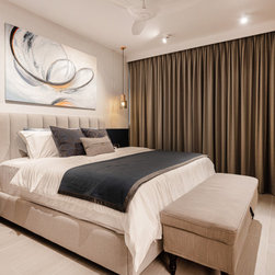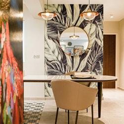 The various shades of brown and dark earthy green along with a carefully selected set of decorative tiles and tropical wall goes a long way and further emphasising the eccentrically cosy make-up of this home. The theme stretches all through the house, from the kitchen, to the bathrooms with mosaic tiles decorating the floor, providing a touch of classic to the modern structure.
