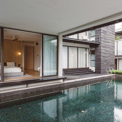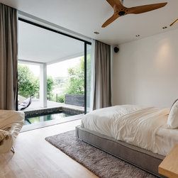 Have a peep inside how we've designed a good class bungalow! Keeping muted colours as the key theme colour, using mainly natural wood elements to create the warm yet light & airy space.