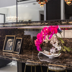 The intricate textures convey a persistent theme at the same time make the holistic area looks exceptionally grand. To give it more sheen and more excitement, a bit of gold accents on the furniture and lighting is effectively used to brighten up the room.