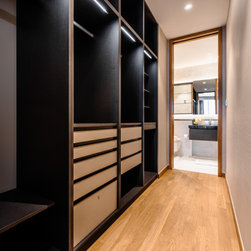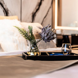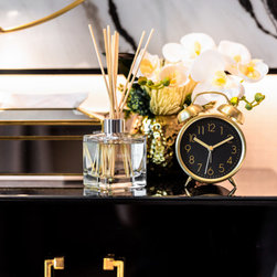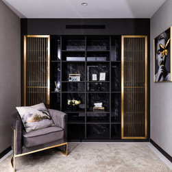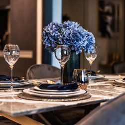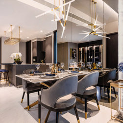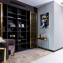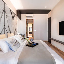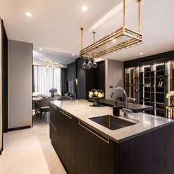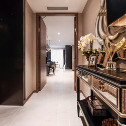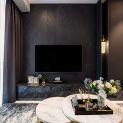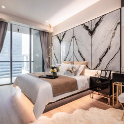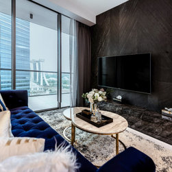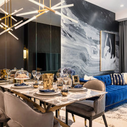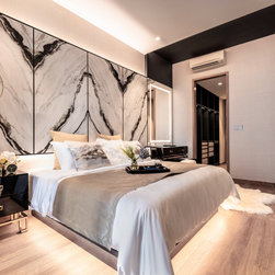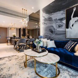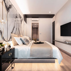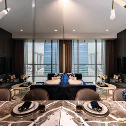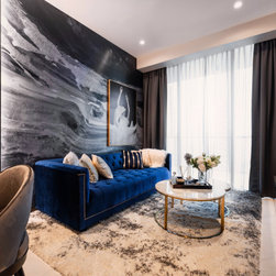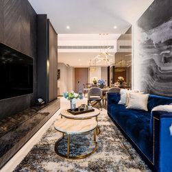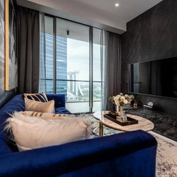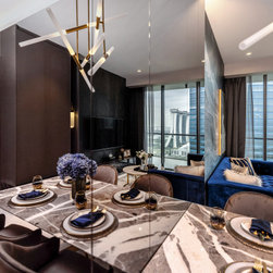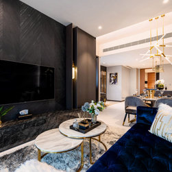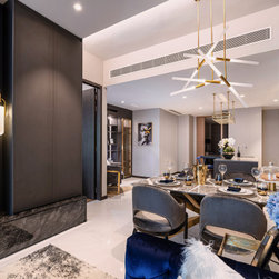 Dramatic yet deluxe, this home design deploys on modern oriental influences. Unique furniture pieces can be found every corner while black and beige aspects establish a tonal balance with a striking of royal blue decor at the common area. Metallic accents and light fixtures subtly reflecting and intensifying the brightness of the place while maintaining that spark of luxury.