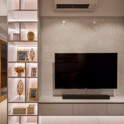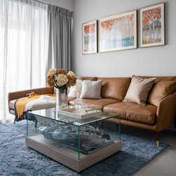 The force is strong in this Modern Contemporary home, equipped with modern decor and lighting. The living room’s jewel blue carpet contrasts nicely with the sunny disposition of the tan leather sofa. Centred around the room is a custom-made display coffee table to showcase the homeowner’s interest in Star Wars collectibles.
