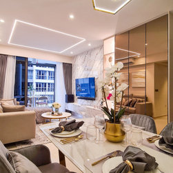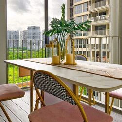 Practical luxury is the aim of this apartment and this is evident on those plush dining chairs that look so comfortable to sink into, the flushed ambient lighting that mimics a cove lighting effect minus the bulkiness of a false ceiling, and the outdoor dining area for an opportunity to keep in touch with nature during those busy moments.