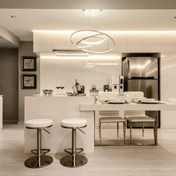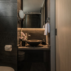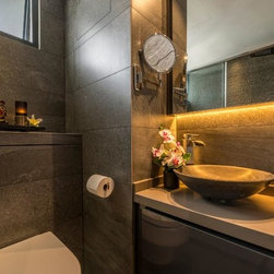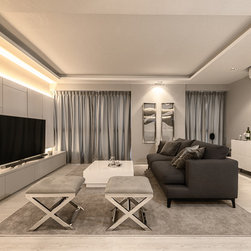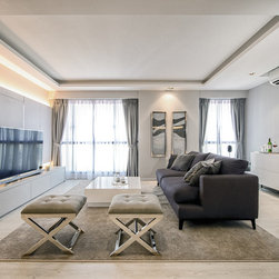 Our team has conceptualised a chic, minimal and modern contemporary “Staycation Home” which combines several 5-star hotel inspirations with two alluring resort bathrooms consisting of spa-like features as an invitation for relaxation. One of the greatest challenge to convert the HDB to look like a hotel was its huge air-con trunking. Instead of concealing it, we decided to feature it in a-very-Mr-Shopper-style - we specially sourced for the right material and supplier to embellish it. The luxurious and cozy setting will make you feel like you are going on a holiday whenever you are home. We will let the photos do the talking.