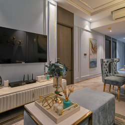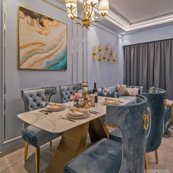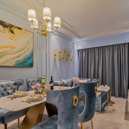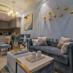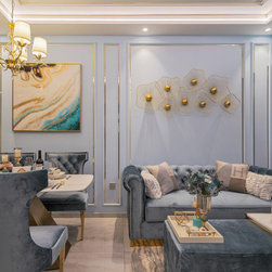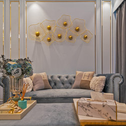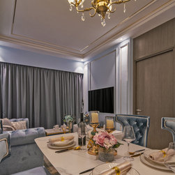 A hallmark of classical design, wall panels of beading and classic wallpaper prints are an instant way to add an element of classic luxury to a home. The pastel colors of plush teal and gold trim fittings, feel feminine while the use of large-format wallpaper prints adds a pleasantly young and contemporary feel to the look of the abode.