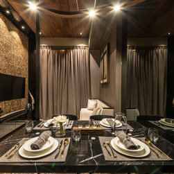 We try to have a different approach to a common Modern theme that was requested. Making use of define lines, polish furnishings and lotsa natural elements like wood and glass to create textures and layers to the space achieving a glamorous yet understated look.