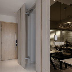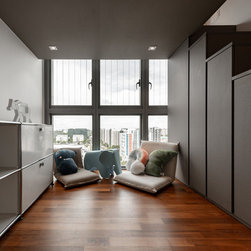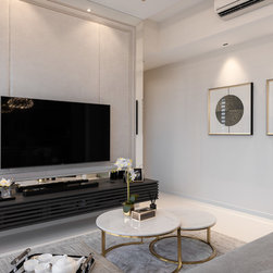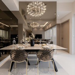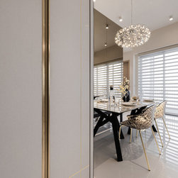 Different elements are applied to mark a different accent for each zone in the home. For example, the master bedroom, living room and dining area have more gilded detailing & golden frames to give it a splash of lush while the child’s bedroom and study area is kept neat and simple to give it a down-to-earth feel.