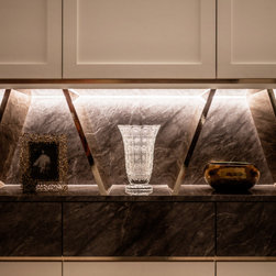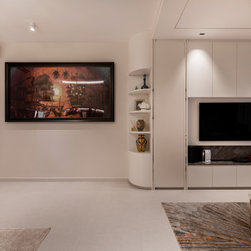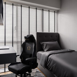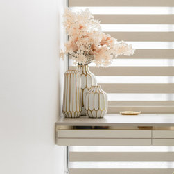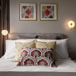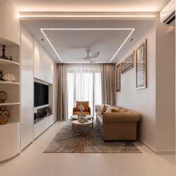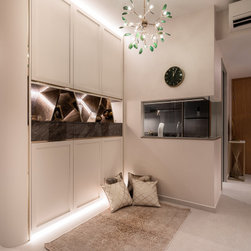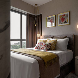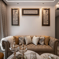 A fusion of Moroccan decorative accessories complements flawlessly with the Modern Luxe design. The curved end of a TV console makes a unique visual entrance with open shelvings available to display travel trinkets.