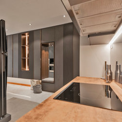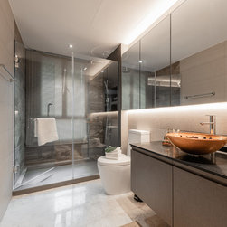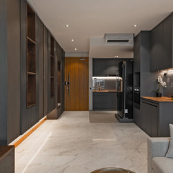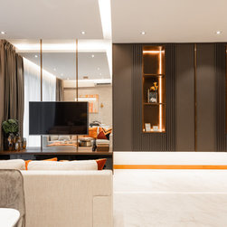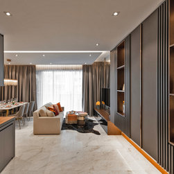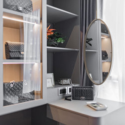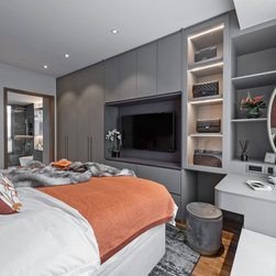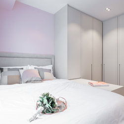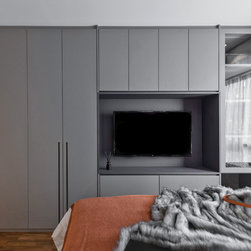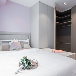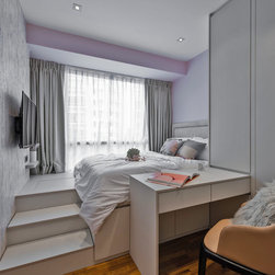 Step into the master bedroom, and you’ll find a space where the designers have matched efficient living with the stylish comforts of this energetic home. Through careful space planning, the bedroom works around its space constraints to fulfil a myriad of needs, which include incorporating a TV, a vanity table and a changing area.