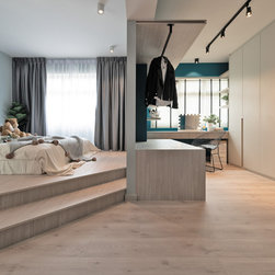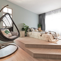 To make it a fun and comfortable place to live in, a swing chair is introduced to highlight the entertainment station of the home. Details are not to be neglected as well: storage pieces such as the chair, mirror and coffee table are doubled as stylish décor to abide the Scandinavian aesthetics.