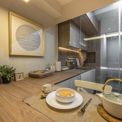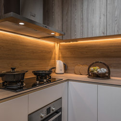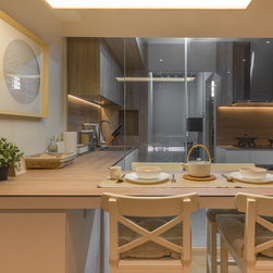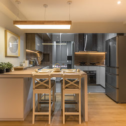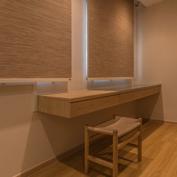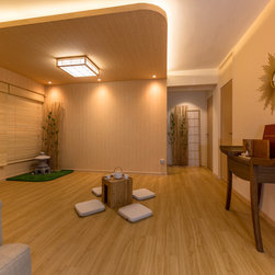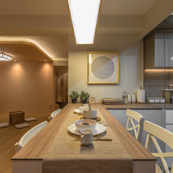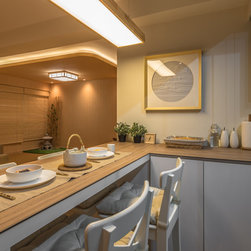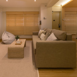 We believe it is possible to find tranquillity amidst our fast-paced lifestyle and we did it! Our Team created a small garden decorative area as a perfect focal point for their yoga/ meditative session is definitely a serene idea! Living room wall was kept clean to also serve as a projector’s screen. We’ve picked furnishings with subtle shades made of organic materials plus blending pieces with simple geometric shapes and irregular natural shapes to create some contrast.