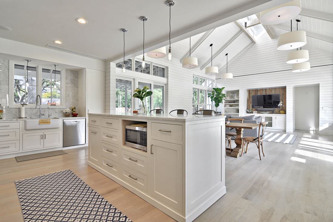 Classic Hamptons architecture features details such as pitched ceilings, exposed beams, timber sarking on walls and ceilings, wood floors, pale colours and lots of light. Consider this when planning a Hamptons kitchen, as it will work best in a house that already possesses some of these features.