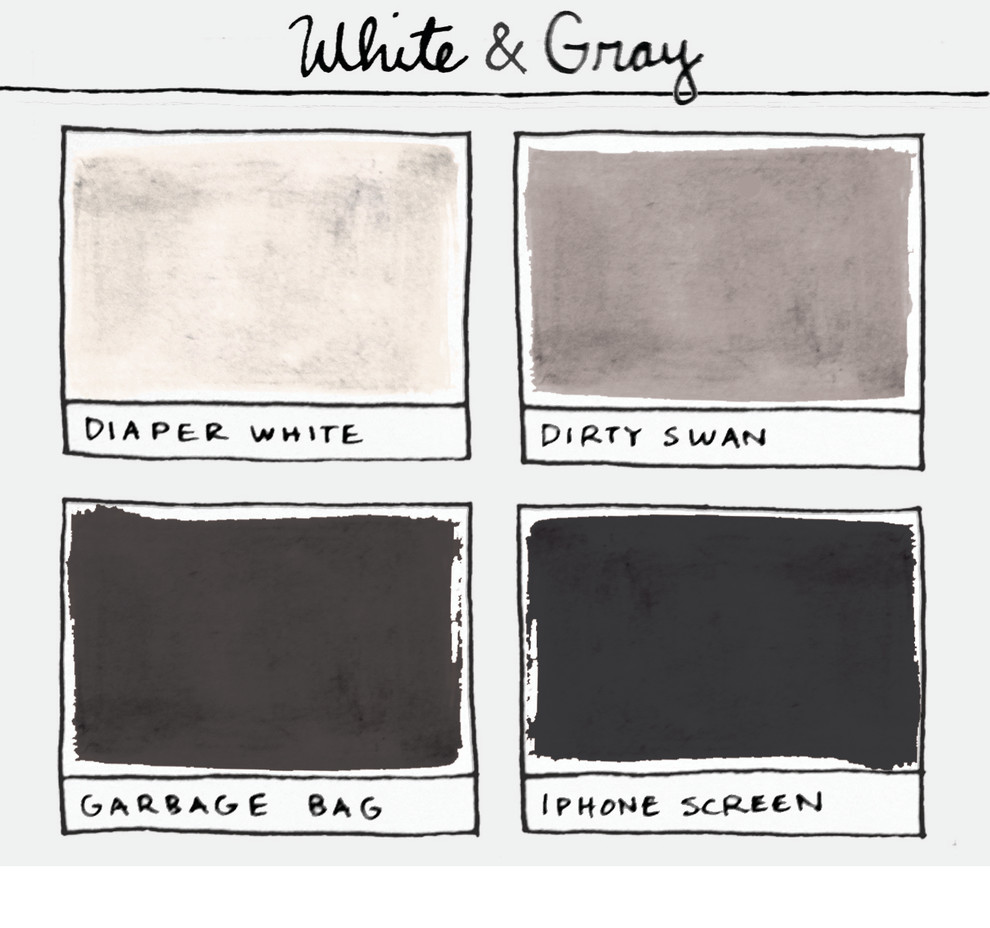Dog’s Ear, Going to the Chapel, Baby’s Bottom and Dangerous Robot. No, these aren’t movies, cocktails or novels – they’re actual names of colours of paint for the home. (See the last two here and here.) Clever and sometimes odd names may or may not describe hues best, but they’re always fun. So we decided to make up a few paint names of our own. (Warning: Some may describe their hues a little too accurately.)