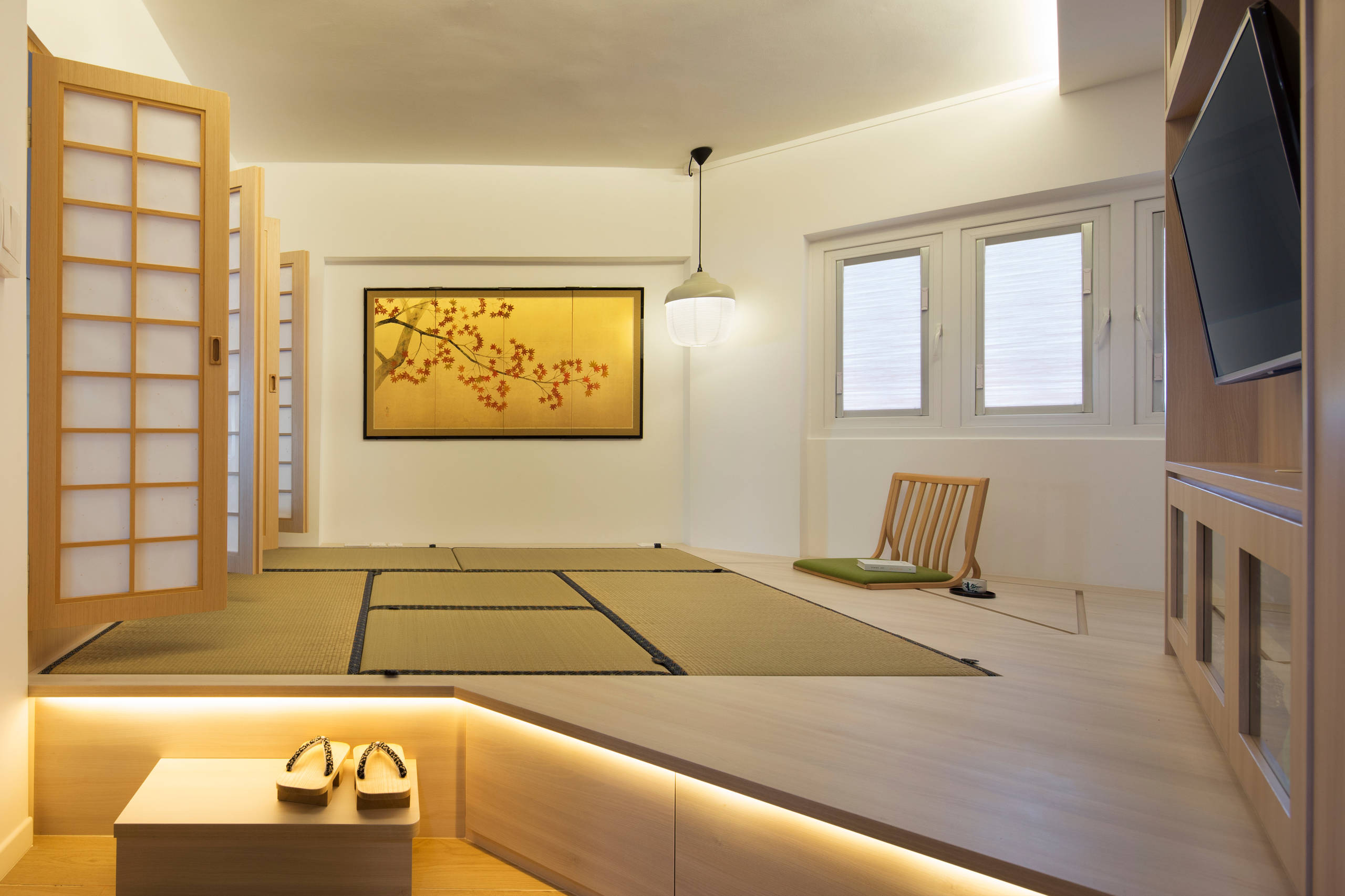 This HDB maisonette in Tampines was designed by Eric Chua of Sync Interior, who immersed himself in Japanese culture to create this faithful recreation of a traditional Japanese inn. The homeowner had lived and worked in Japan previously and wanted to bring that experience with him when he moved back to Singapore.