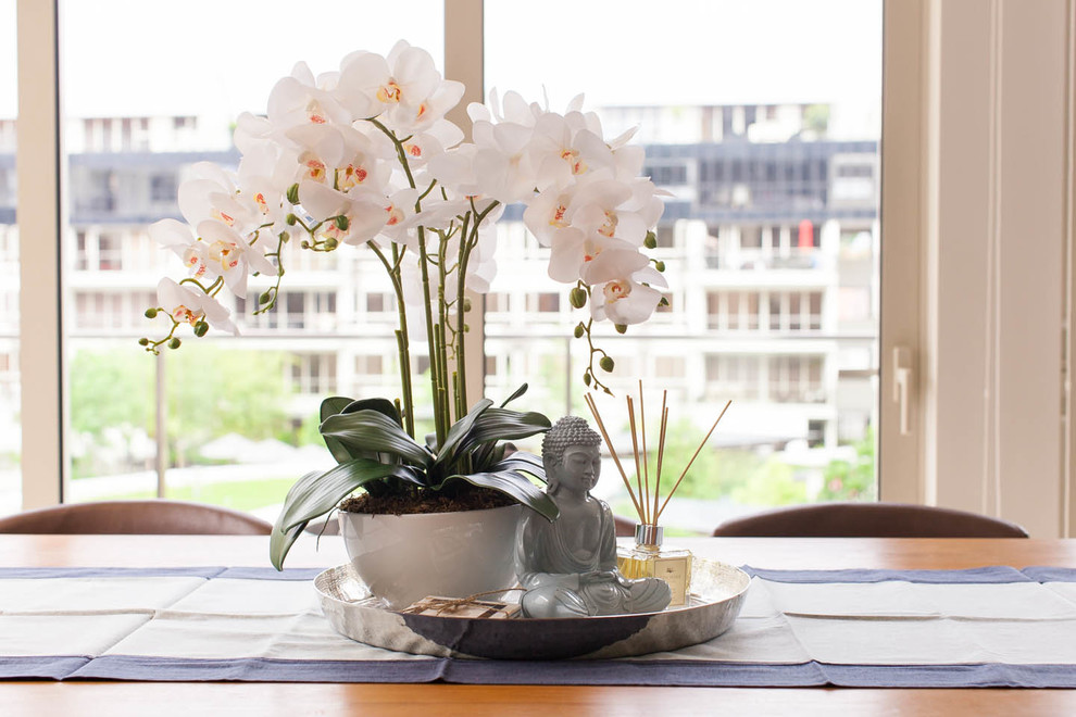 Plants work a treat too. A vase of fresh flowers lifts the mood of the room instantly. Plants also bring vibrant chi into a room, which helps you have a more refreshing meditation experience.