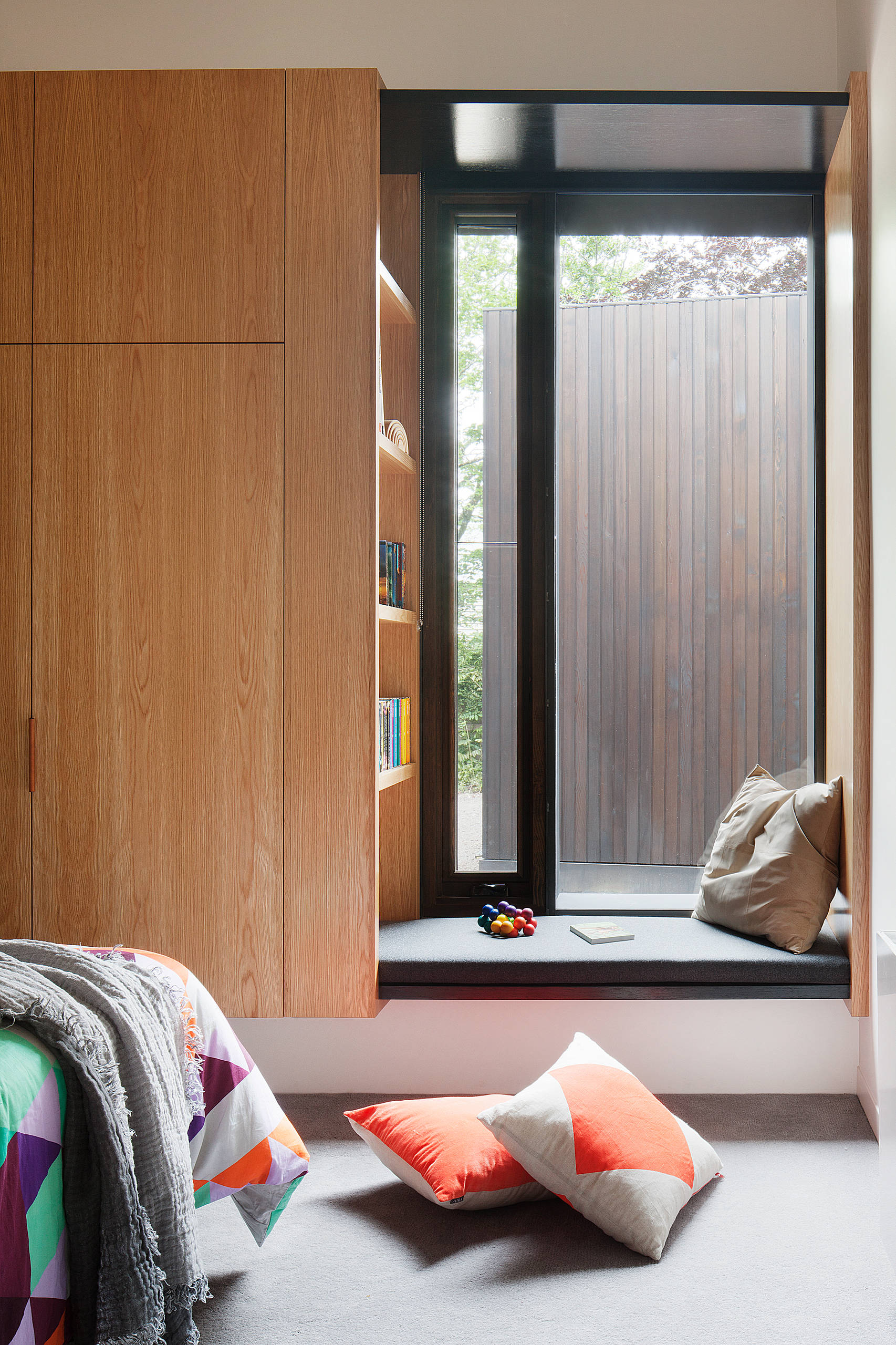 More bedrooms should have built-in window seats: sometimes you want to retreat to your bedroom, but you don’t particularly want to lie on the bed. Enter the window seat, which ideally should – as this one does – come with a bookshelf so you don’t have to move. The long window for ventilation is a particularly nice touch here. And a couple of artfully scattered cushions is always a good idea.