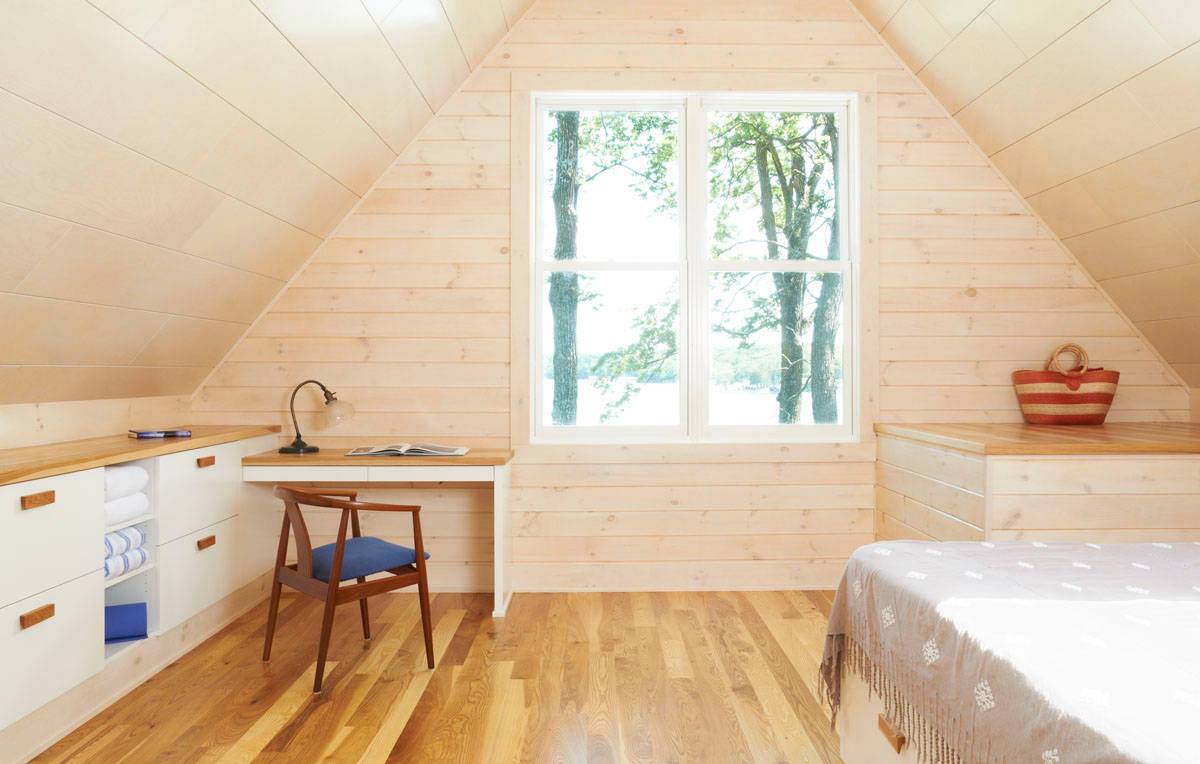 In a similar move, this desk and drawer combo makes great use of space in a forgotten corner. Eaves in attic bedrooms can be too low to be functional, so furniture designed to be used at seating height is a winner.