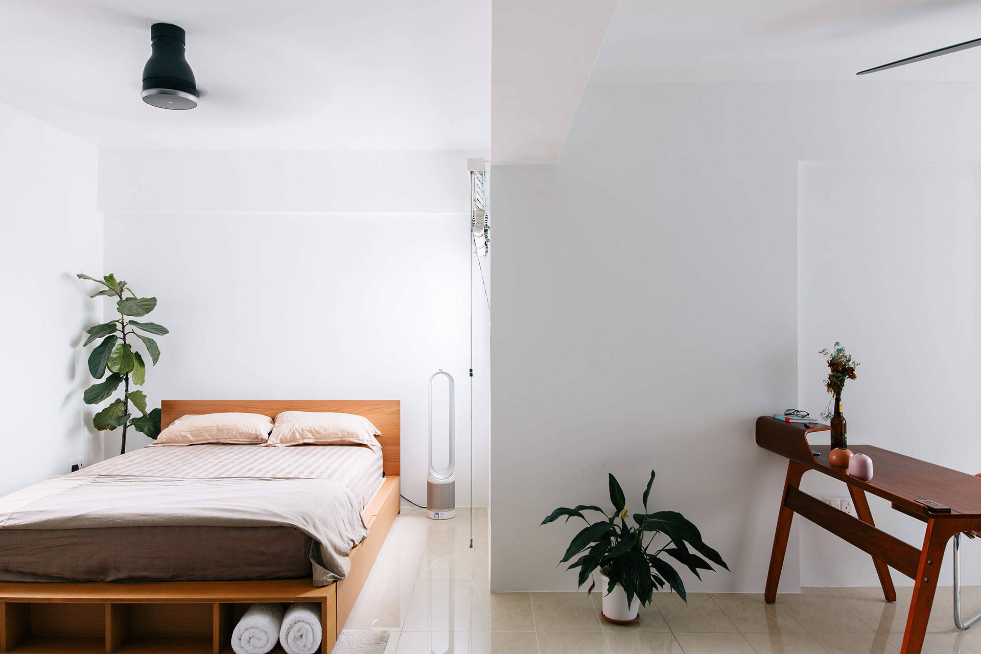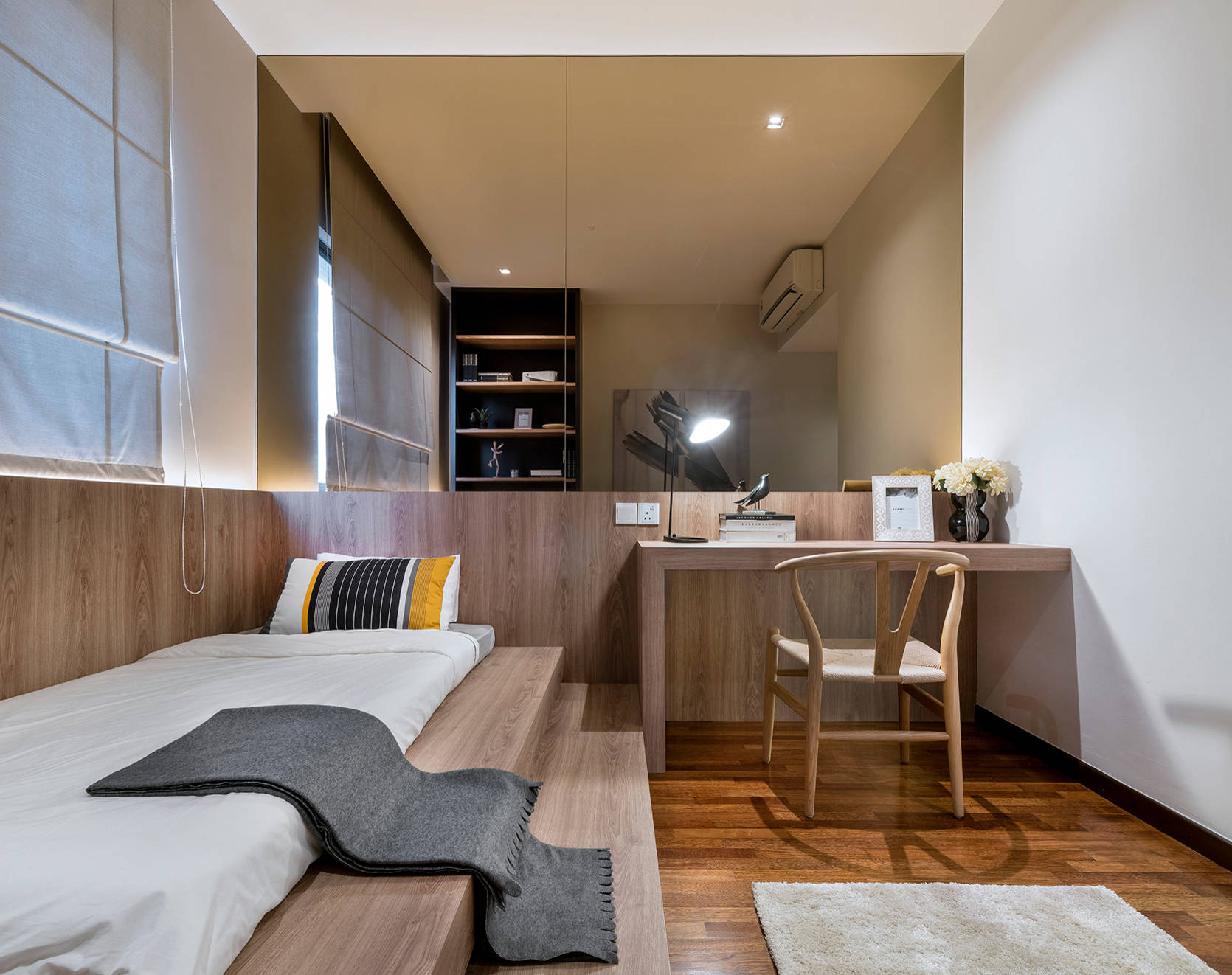 Features: A well-dressed bed that doesn’t look out of place in a home office.