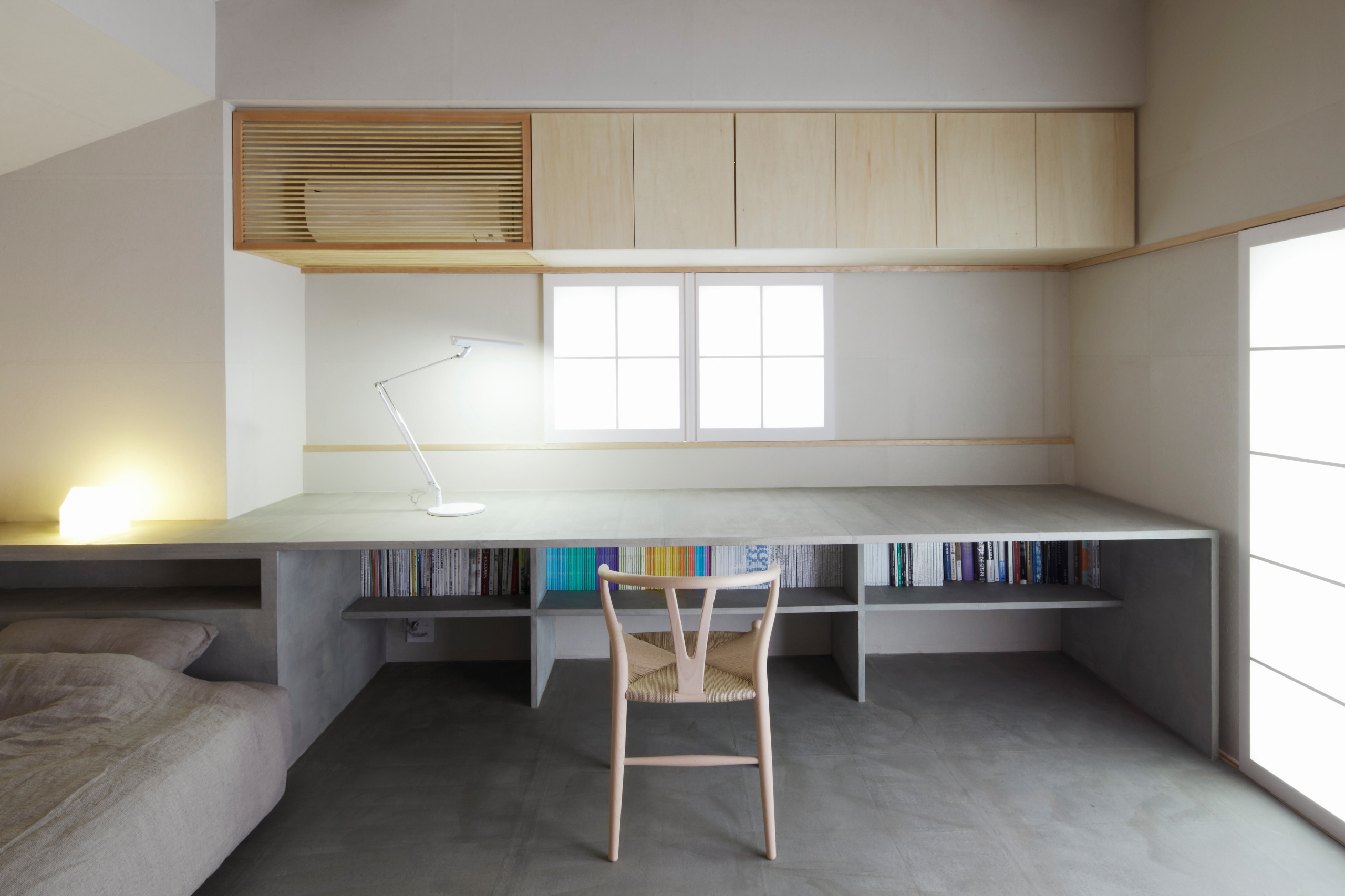 Features: Access to lots of fresh air and light plus book storage galore.