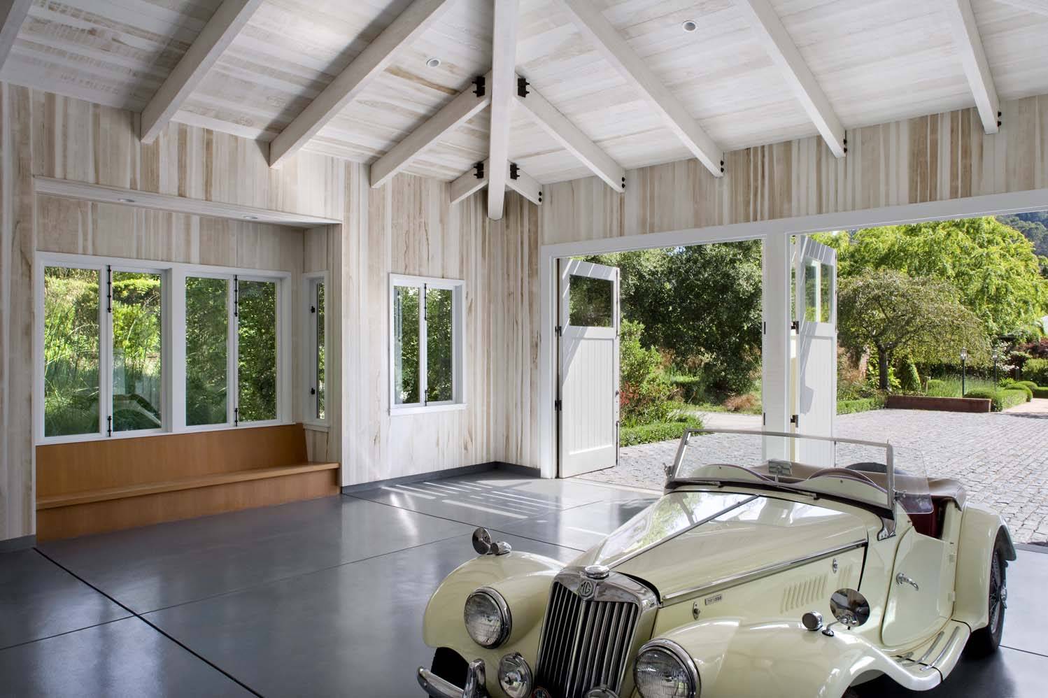 This jaunty jalopy gets it’s own garage-cum-guesthouse when it comes to stay. With enough space to hold a country wedding, this beautiful purpose-built modern barn can house a number of cars, including the vintage MG convertible pictured here.