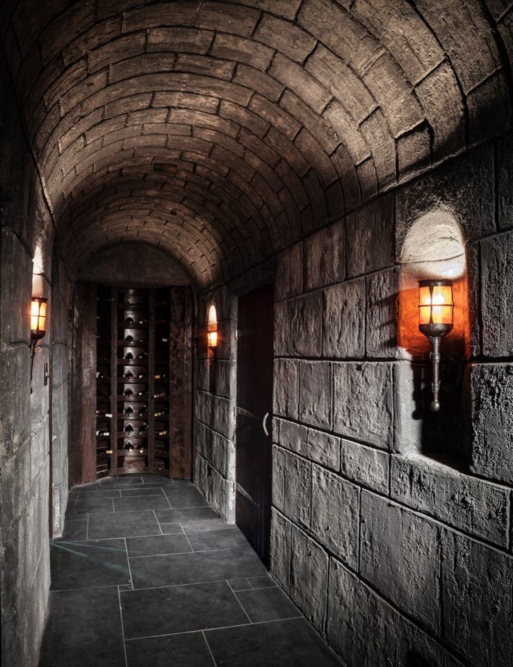 The steps down to this wine cellar are hidden behind a swinging bookshelf. Could a basilisk, featured in Harry Potter and the Chamber of Secrets, be lurking here?