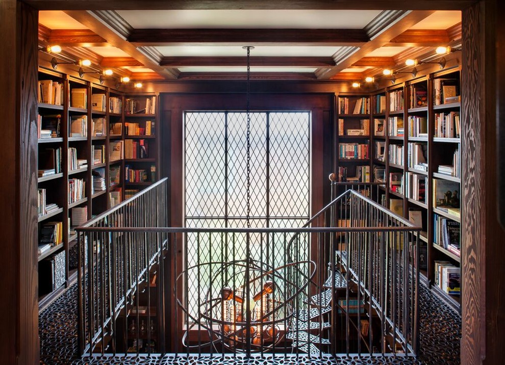 The library at Hogwarts is chock-full of old books and secret nooks. This library would fit right in, with its intricate spiral staircase and multilevel cherry bookshelves.