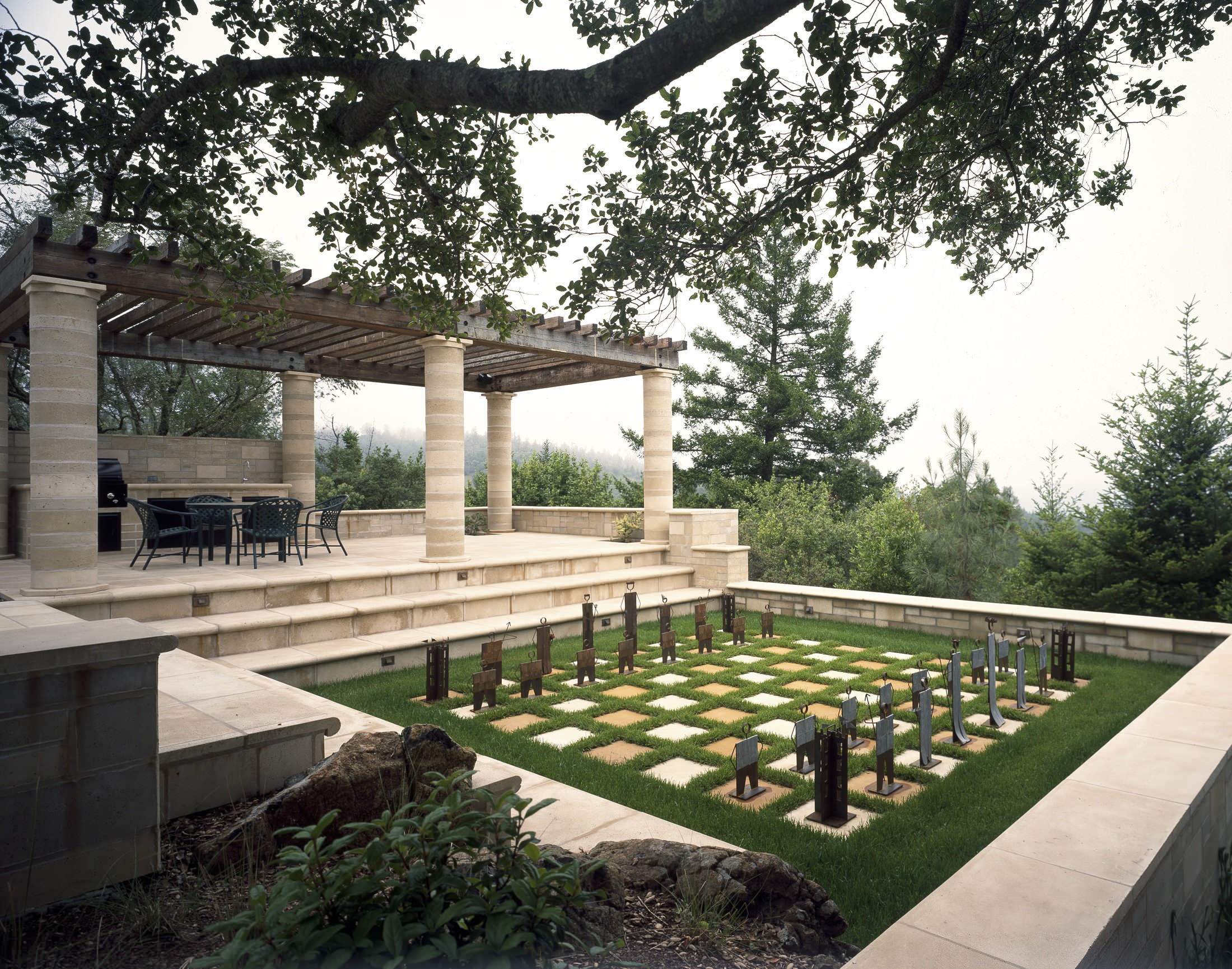 This outdoor lawn chess game evokes the deadly human-size game played by Harry, Ron and Hermione in Harry Potter and the Philosopher’s Stone.
