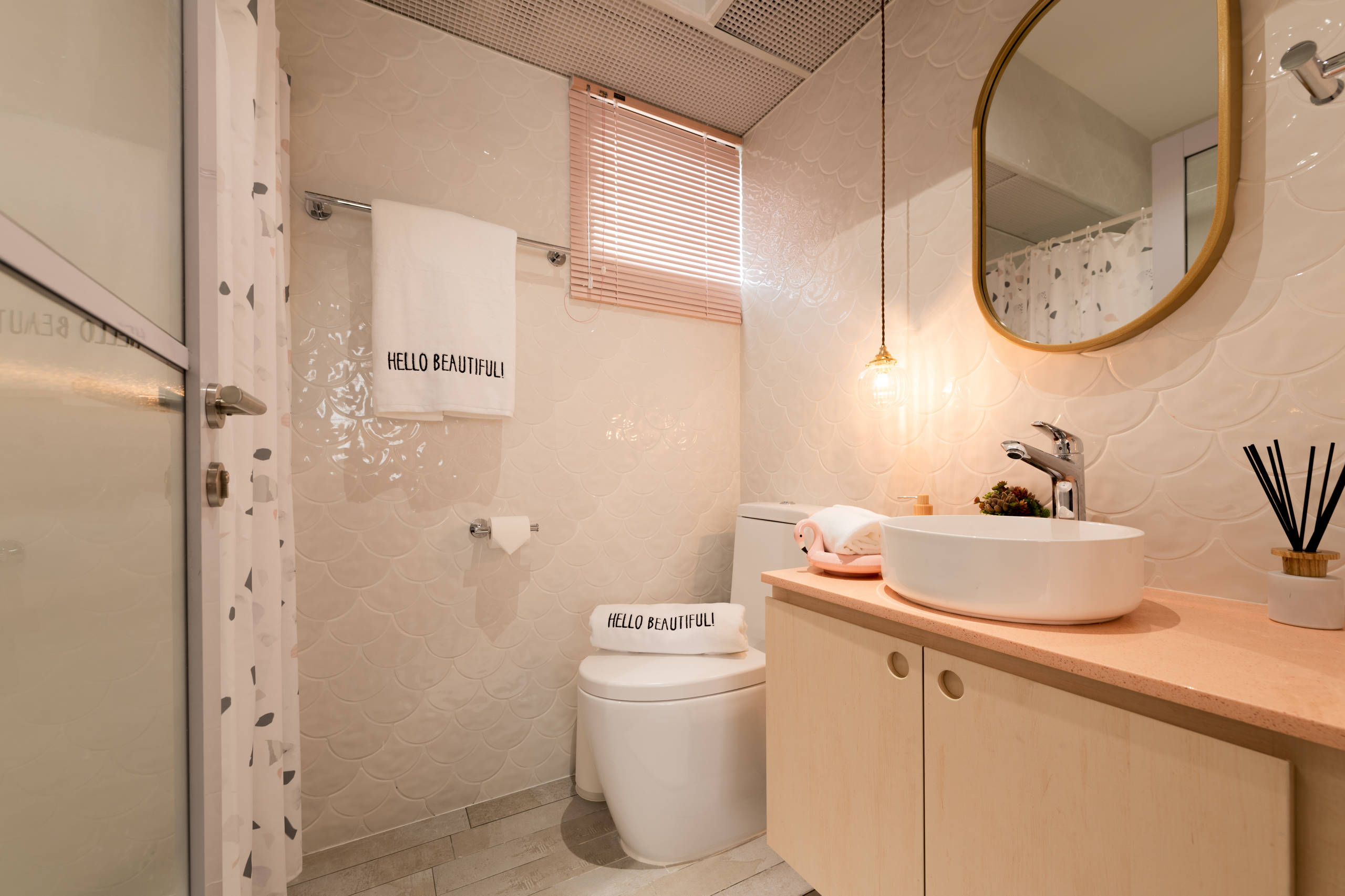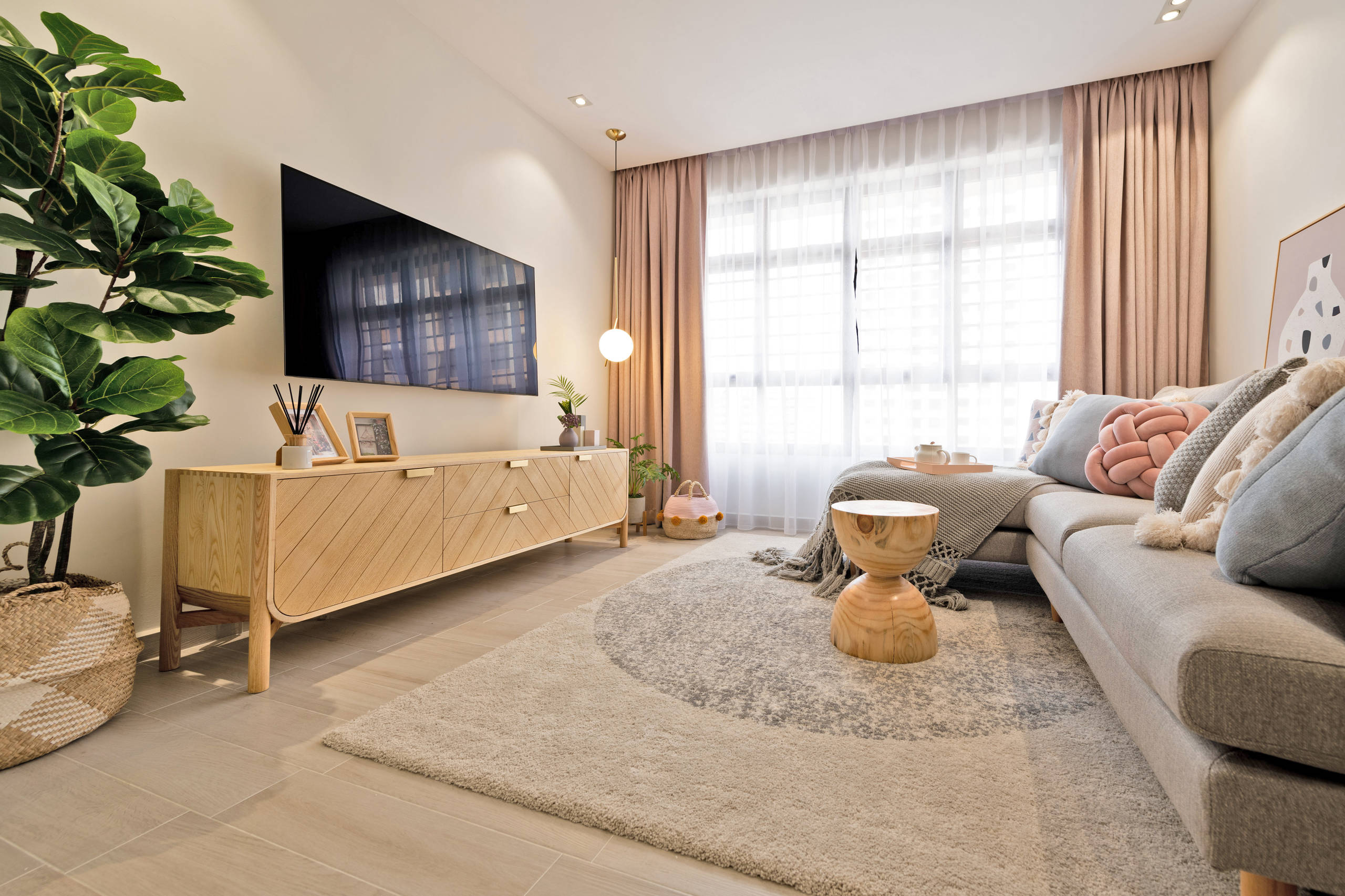 The owners wanted a light-filled, pastel-coloured Scandinavian theme for their new marital home, with the husband opting to let the wife have her dream space. As such, the Mr Shopper Studio design team consisting of Sheldon Toh, Kate Deng & Ken Lee used a colour palette of light wood, neutrals, rose gold and pink.