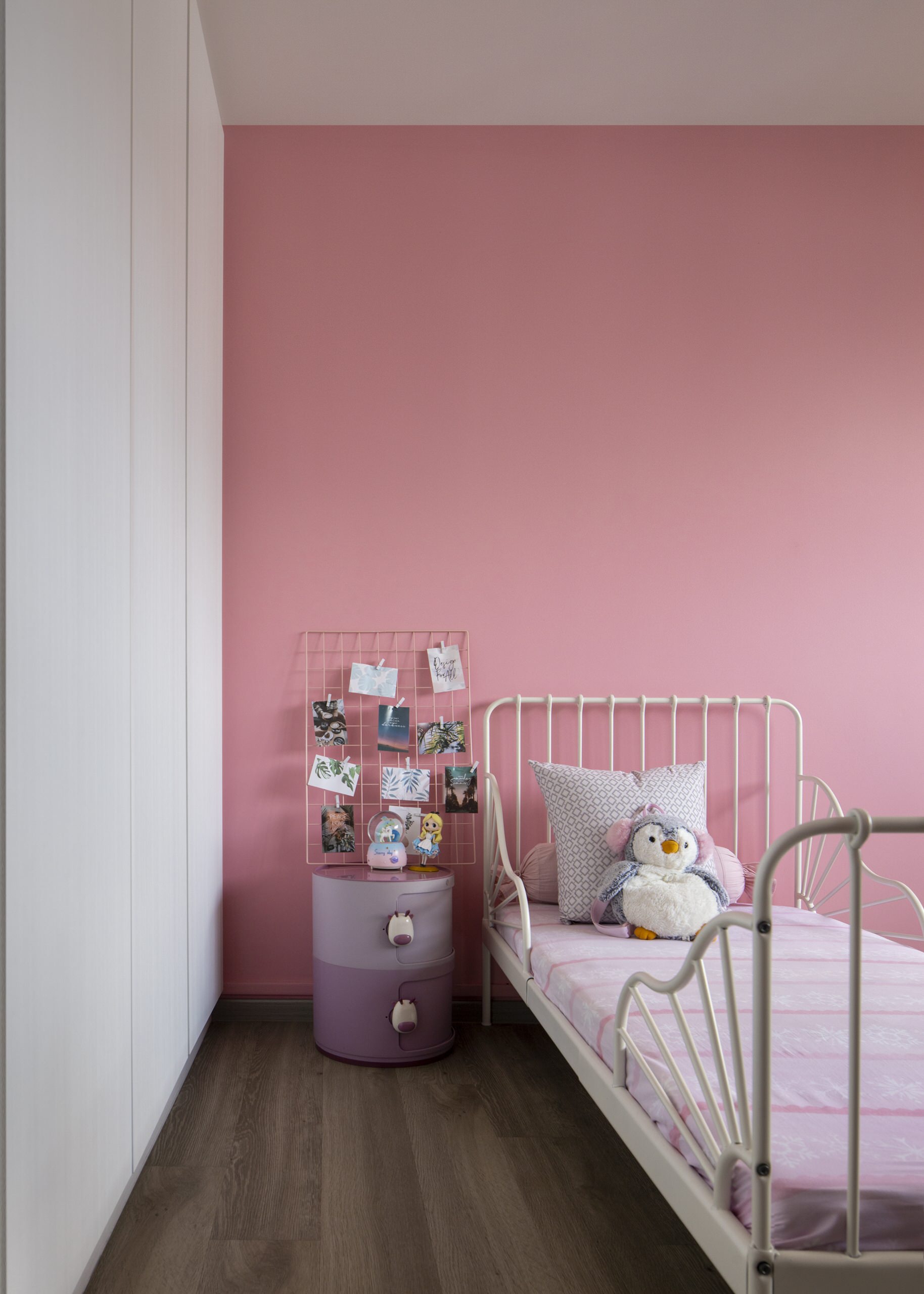 The daughter’s room, although minimally furnished in the same elegant hand as the other rooms, was painted in colours that she appreciates.