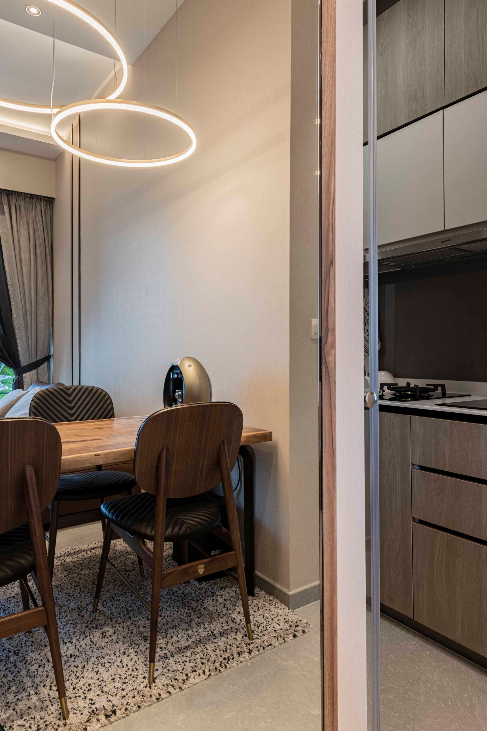 Their new three-bedroom condo would have been adequate space for this family of three, but they “needed to be able to open up the space to accommodate from three to seven persons”, says interior designer Thomas Teo of ERStudio. Together with that brief, the owners also asked for a cafe-style ambience – Starbucks, in particular, was their inspiration.