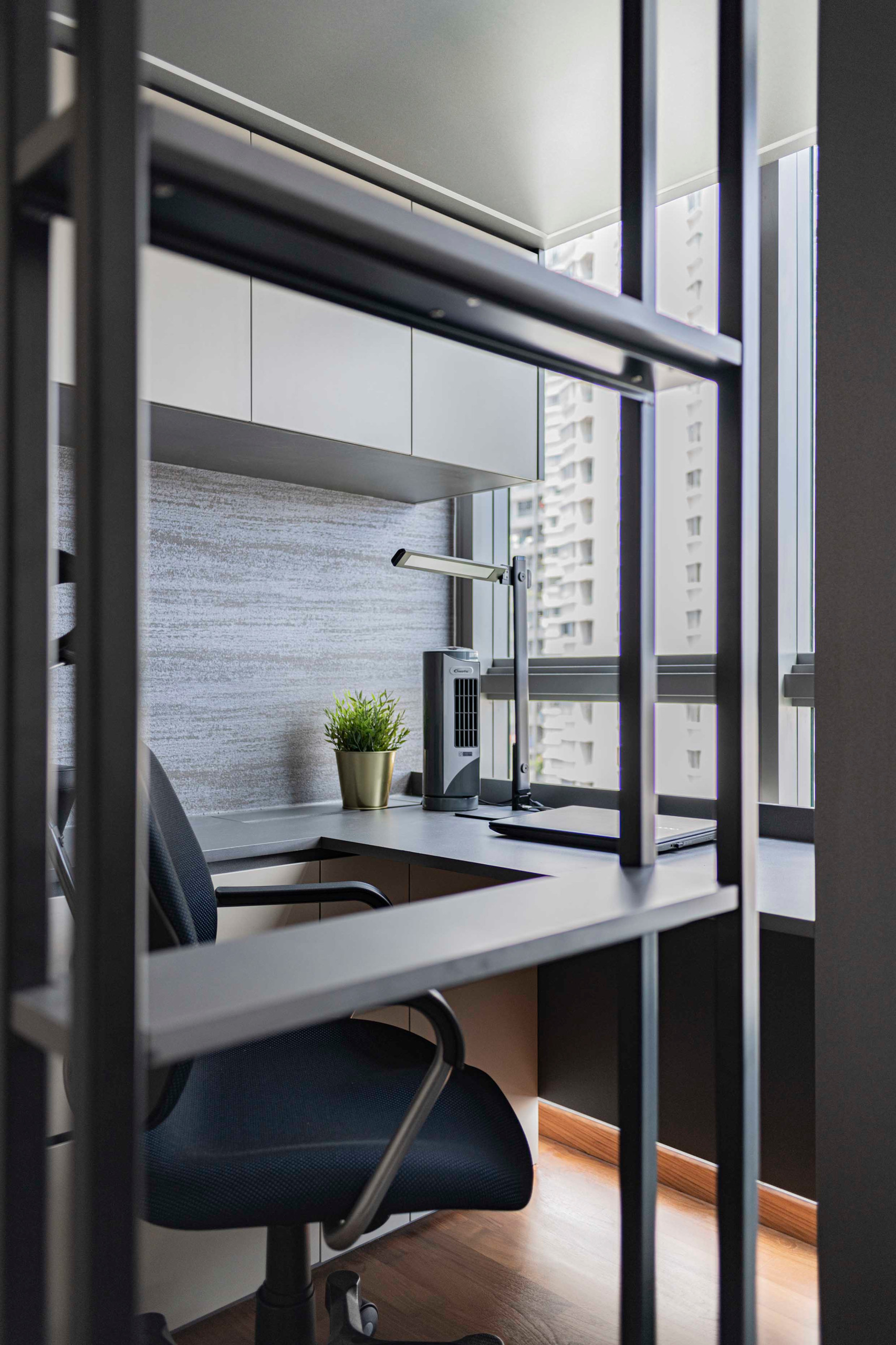The son wanted to fit a study corner, wardrobe and storage, and a comfortable sleeping area in his bedroom, so Teo designed a loft bed that almost doubles the usable area of the bedroom.