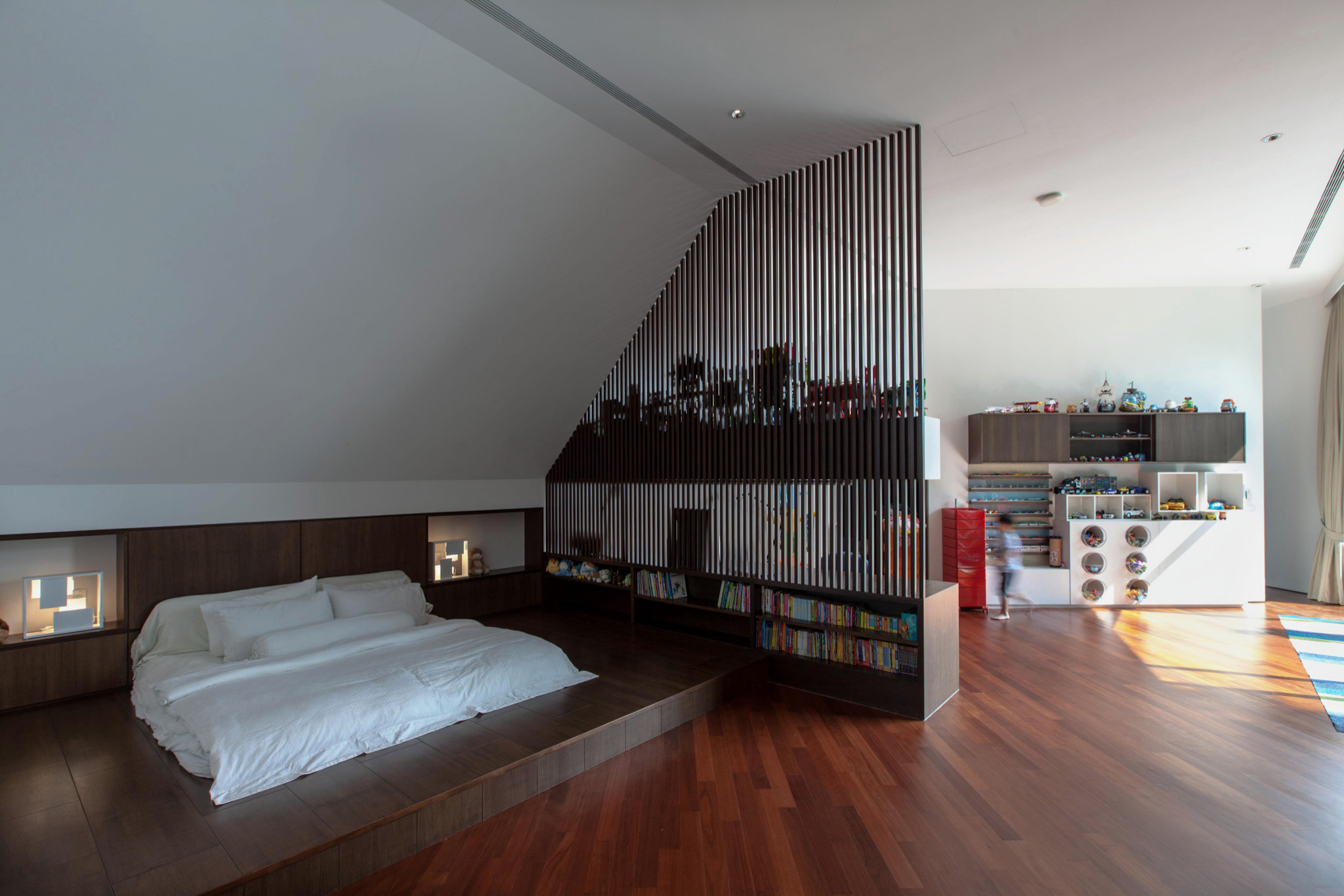 The second storey (L2) houses the study, master bedroom and young daughter’s room. There is also a shared TV area (above).