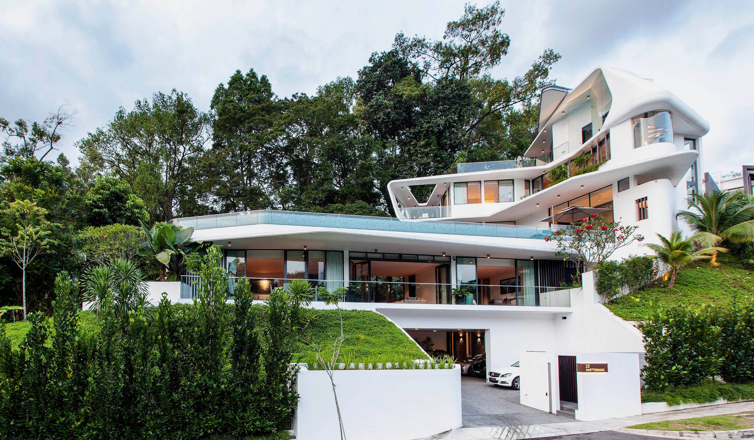 From any level you’re viewing it, this sculptural house looks stunning, its curves hugging the hill it’s on. On the second weekend of Archifest 2018, its owners and architects opened it to Architours visitors. For those who missed the tour, or would like to learn more about this multi-generational house, architect Aamer Taher of Aamer Architects takes us through this house his team calls ‘Meandering on the Hill’.