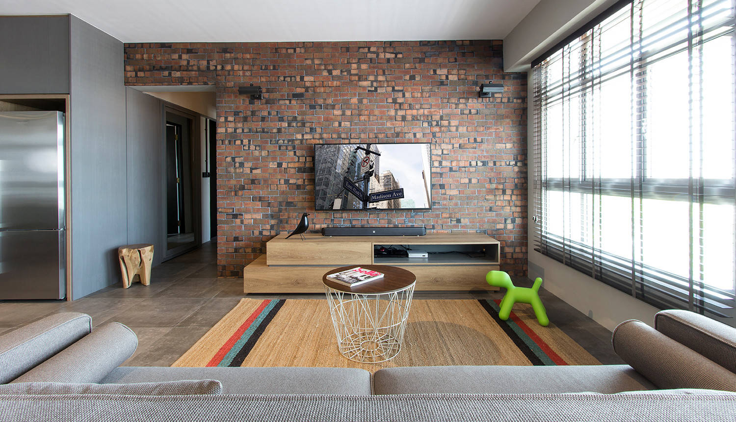Clearly, the focal point of the home is the feature wall in the living area. It wouldn’t be a loft-inspired home without brick walls and Khu went with the real deal. “We used real recycled bricks from old buildings in Korea,” shares Khu.