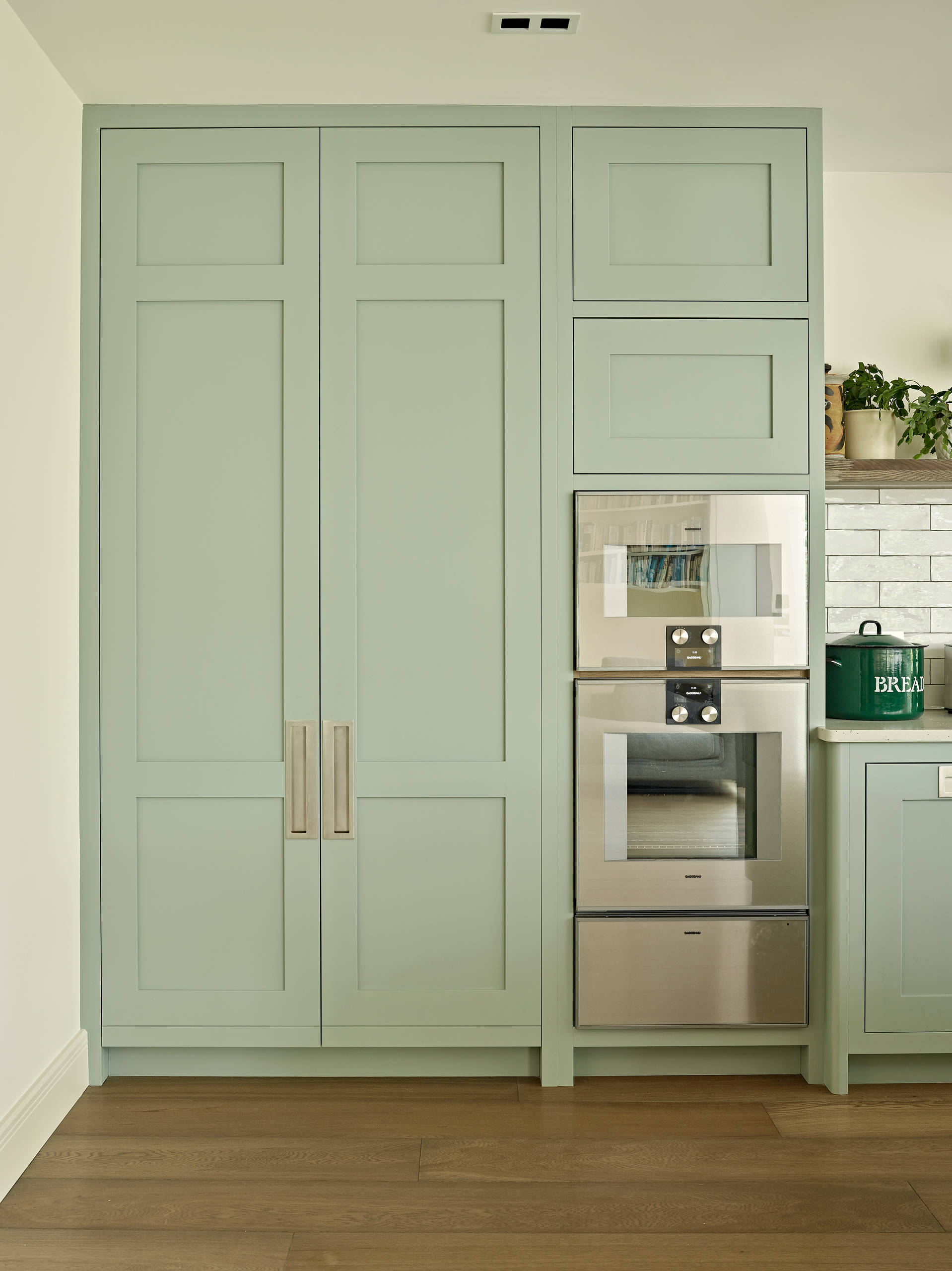 The Shaker cabinets were designed with minimal ornamentation in order to blend traditional and contemporary styles. “The units go right to the ceiling, but without any decorative mouldings at the top,” Barry says.