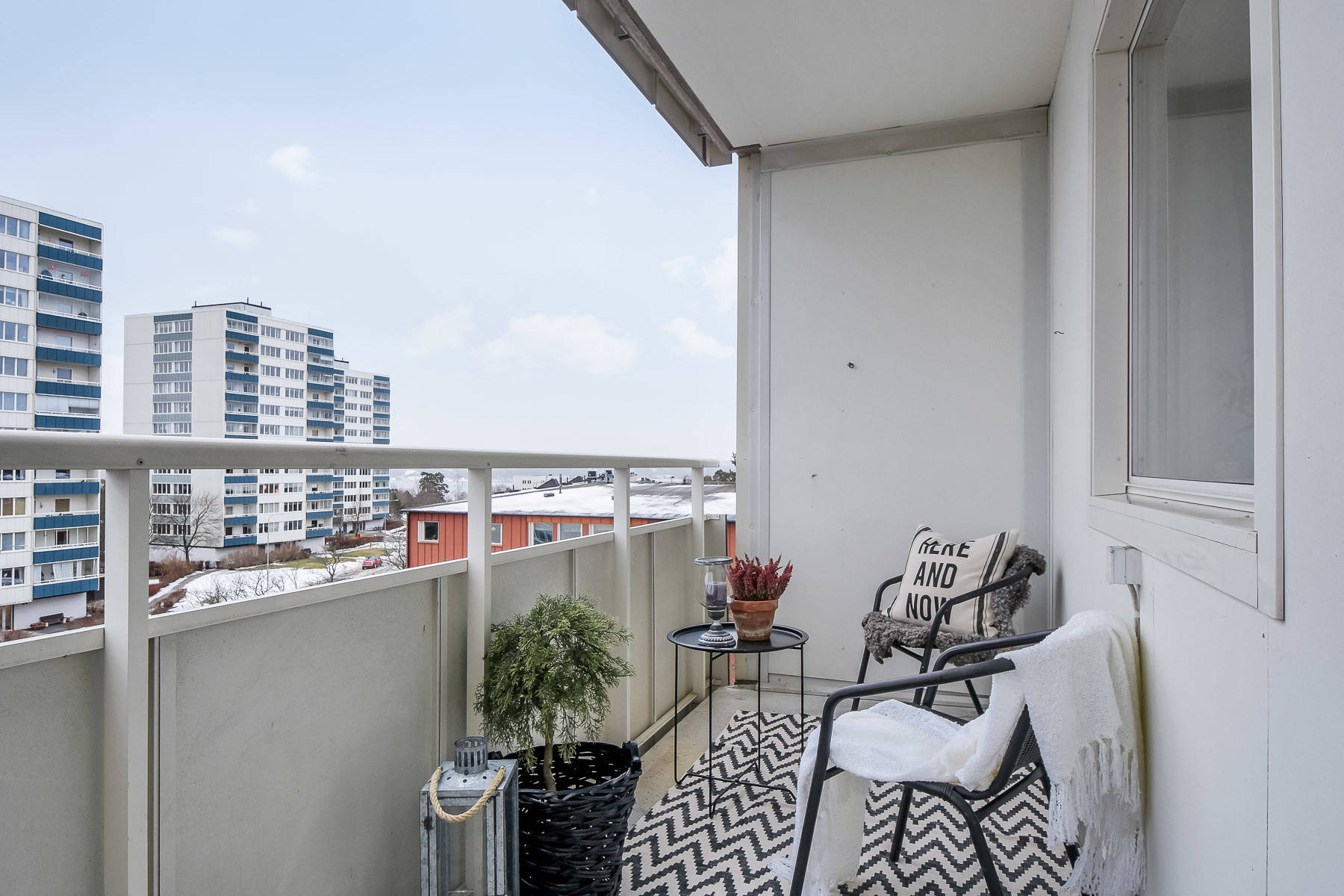 With its stark simplicity – and its view of high-density housing – this could be a HDB balcony in the heartlands of Singapore! However… you won’t find a Singapore balcony indulging itself with an outdoor rug and snuggly throws on the metal-framed armchairs. This is a decorating and lifestyle tip from the Swedes: whatever the space, make it hemtrevliga (homely) and ombonade (snuggly).