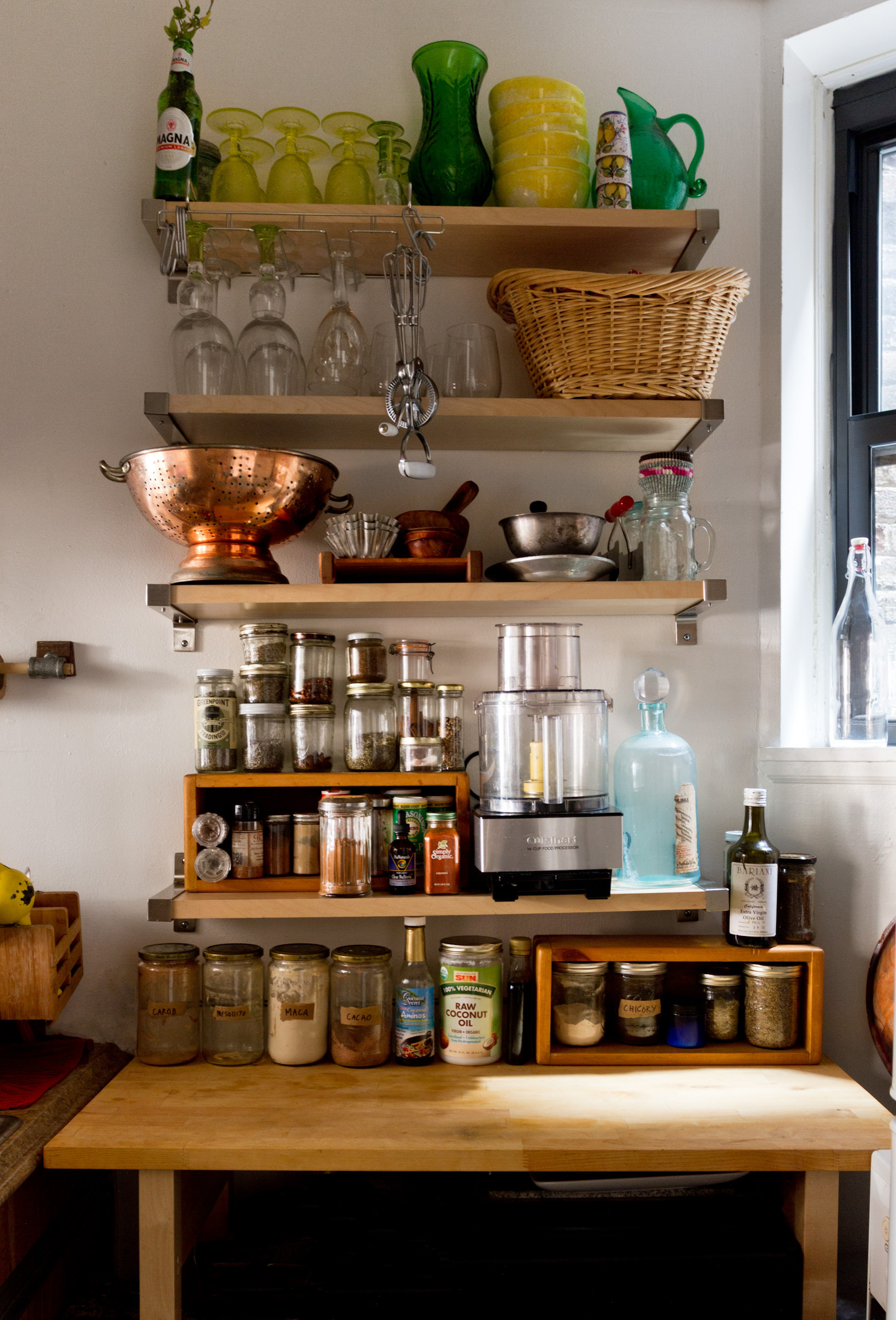 “I spend a lot of time in the kitchen and am a bit of a wellness fanatic, with lots of appliances: blender, food processor, dehydrator, juicer and bulk ingredients in jars,” says Kammerer. “I installed extra shelves and counter space to make my kitchen function better for me.”