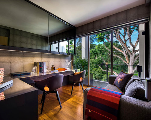 Timber ceiling instead of contemporary false gypsum board false ceiling. Introduce warmth to the space, to balance out the cool tones from the furniture and walls. - bena_liangling