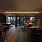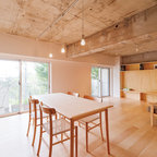 リビングの床を下げる事で、天井も高くなり、間仕切りや建具が無くても、ダイニングとのゾーン分けが出来ます。