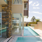 My lap pool will be 8 x 45 ft, raised 18 inches for seating.