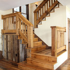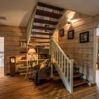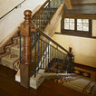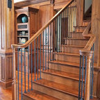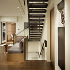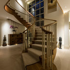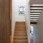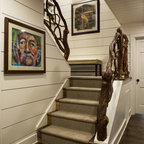Printed carpet on stairs. Adds interest with out artwork and absorbs sound.