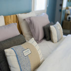 J aime cette tête de lit en forme de paravent....sympa lots d une brocante