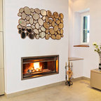 inviting couch, simple table. THAT'S THE TYPE OF SECTIONAL I HAD IN MY MIND, CLEAN LINES, COZY & LOOKS GOOD! I LIKE THEY STORAGE FOR THE WOOD ALSO, IT'S A NICE VISUAL.