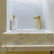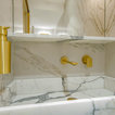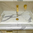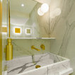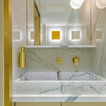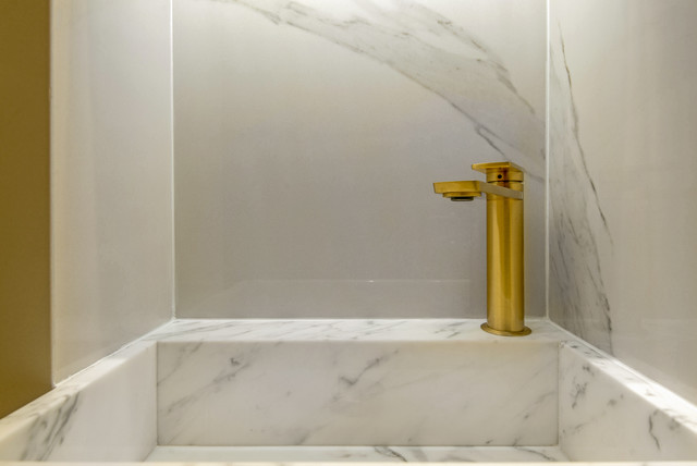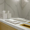 Thrilled and privileged to have worked on our first project in Bond Street in London for a world-renowned jewelry brand on the total refurbishment of their boutique. IvySpace supplied and fit large slabs Italian porcelain tiles (120x240cm) in quite small spaces which have been challenging. Tiles were fit as Bookmatch, mitered at a waterjet machine. We have also fabricated bespoke Marble sink pieces and a Kitchen black granite worktop.