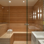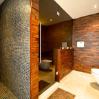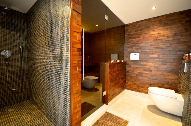 Love wooden spaces! toilet and shower separated spaces
