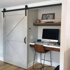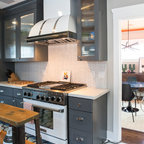 Farmhouse Kitchen Antique White Cabinets with Stainless Range