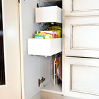 bench with baskets for under the window in the kitchen